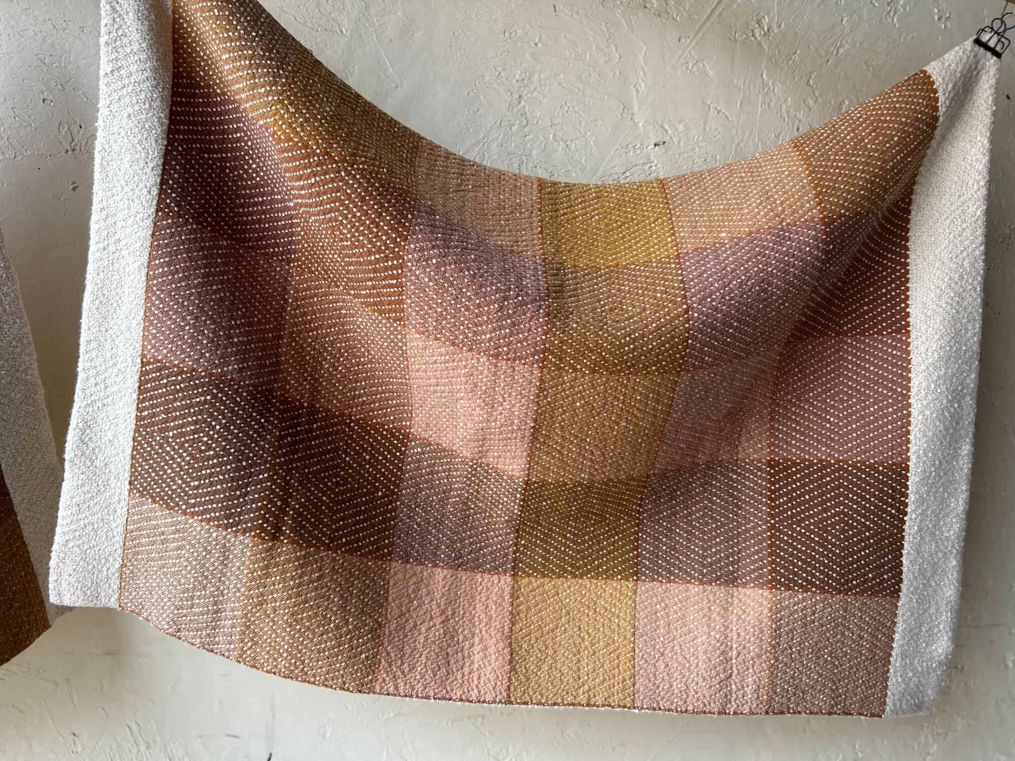 But materials can also be stumbling blocks. For example, I want to weave X, but I only have a 4-shaft loom or I have a vision for a fabric, but can’t get the grist of wool I need in the colors I want. Part of good design (I have been told) is being able to use those stumbling blocks as doors to further creativity. My mentor Ute Bargmann said it most succinctly when she said “Use your brain, not your shafts!”