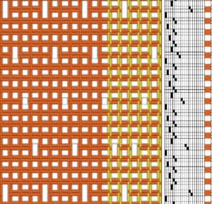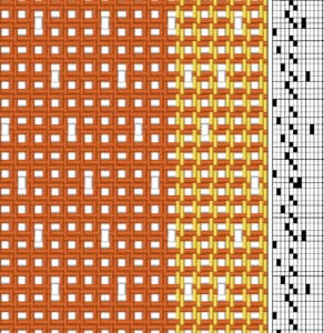 so I adjusted it for ease of treadling. For the final version I placed the stitchers every 11th &12th pick (pic below).