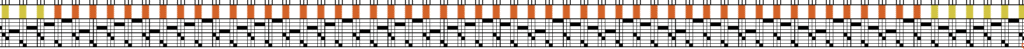 This is the standard tie-up for the body and the borders – since most 8-shaft looms don’t have 16 treadles, I tied up for border 1, re-tied for body and then re-tied again for border 2. This tie-up is still technically a skeleton because you have to step on 2 treadles for the stitcher picks.
